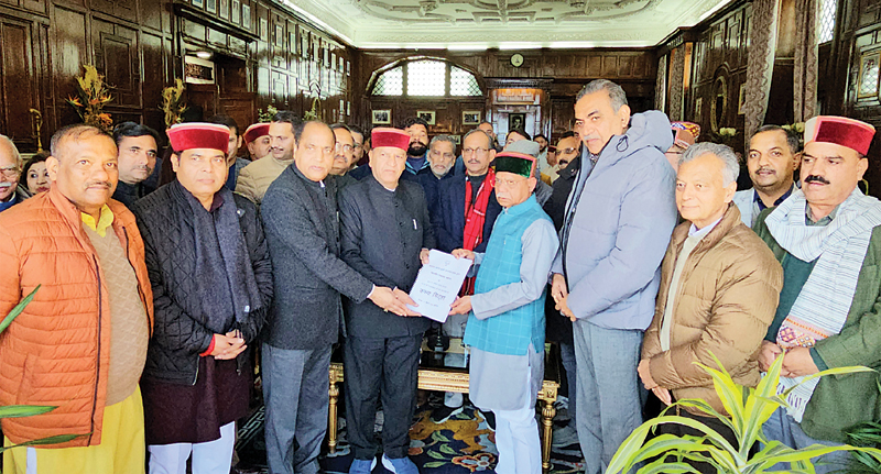 नेता प्रतिपक्ष जयराम ठाकुर और राजीव बिंदल ने नेताओं के साथ राज्यपाल शिव प्रताप शुक्ल को सौंपा ज्ञापन