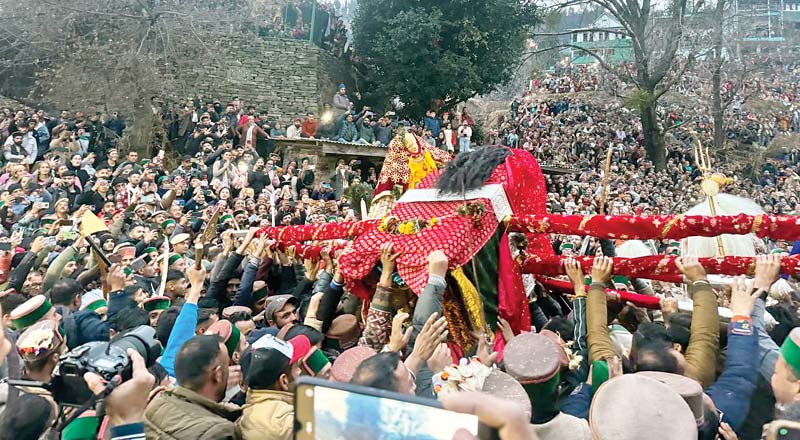 रोहडू के विख्यात बकरालू महाराल मंदिर में पारंपरिक देवधुनों और अस्त्र-शस्त्रों के साथ नाटी डालते पहुंचे देवता