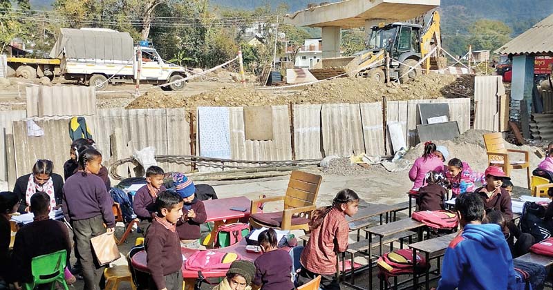 गत जून माह में फोरलेन के पंजे ने स्कूल के अस्तित्व को मिटा दिया था, तब से लेकर आज तक उधारी के जीर्ण शीर्ण कमरों में चल रहे स्कूल की सुध लेना तथा बच्चों के साथ स्टाफ के लिए भी नाममात्र शौचालय की व्यवस्था करना भी किसी ने जरूरी नहीं समझा। इस आशय की गुहार भी स्कूल प्रबंधन प्रशासन और विभाग के उच्च अधिकारियों से लगातार लगाता आ रहा है । इस दौरान स्थानीय निकाय के साथ प्रबंधन समिति के प्रस्ताव भी रद्दी साबित हुए, जो दुर्भाग्यपूर्ण है। स्कूल की मौजूदा स्थिति देखते हुए किसी के भी रोंगटे खड़े हो सकते हैं, जहां पढ़ाई कर रहे बच्चों से मात्र कुछ गज की दूरी पर फोरलेन की भारी मशीनरी उठापटक में लगी हो और निर्माण सामग्री के साथ मिट्टी से भरे ट्रक अनलोड हो रहे हों। वर्तमान समय में उच्च शिक्षा विभाग के खस्ताहाल कमरों में प्राइमरी स्कूल चल रहा है तथा पर्याप्त कमरों के अभाव और ठंड के चलते बच्चों को बाहर बिठाना स्कूल की मजबूरी भी है।