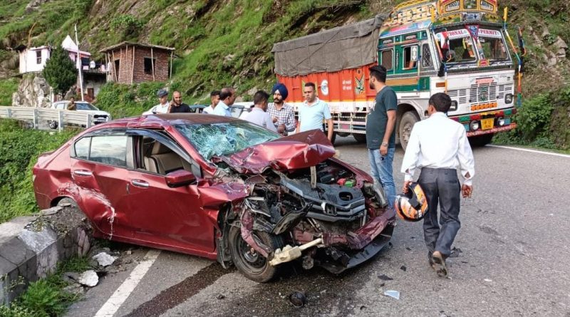 पठानकोट चंबा सड़क मार्ग पर ट्रक कार की टक्कर दो लोग गंभीर रूप से घायल