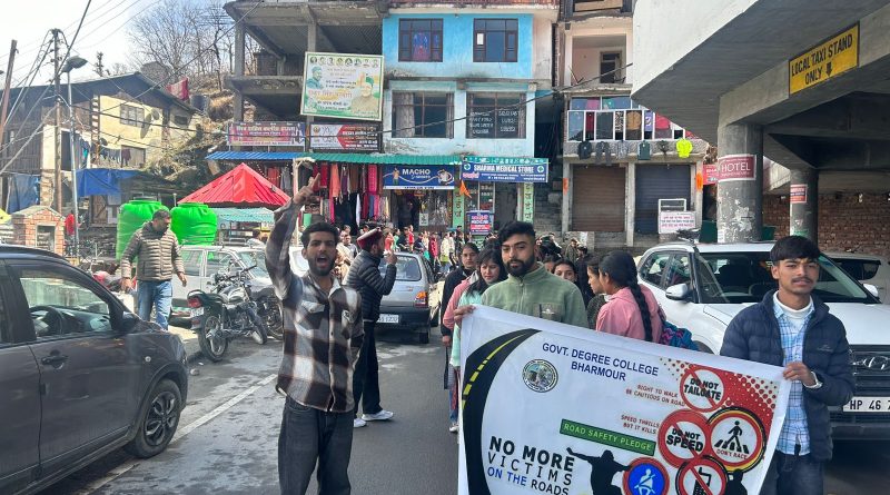 डिग्री कॉलेज भरमौर के छात्रों ने सड़क सुरक्षा पर भरमौर बाजार में निकाली रैली….