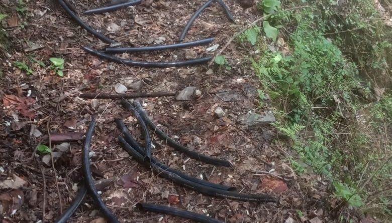 तीसा। डब्बू नाला से सिंचाई के लिए बिछाए गए करीब 800 मीटर लंबे रबर पाइप को शरारती तत्वों ने दराट से छोटे-छोटे टुकड़ों में काटकर फेंक दिया है।