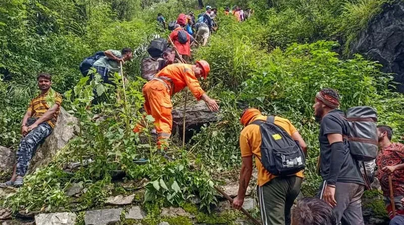 उत्तराखंड के केदार घाटी में बुधवार रात्रि को हुई अत्यधिक बारिश के कारण केदार घाटी में कई जगह रास्ते क्षतिग्रस्त हुए हैं। विभिन्न पड़ावों पर फंसे तीर्थयात्रियों एवं स्थानीय लोगों को सुरक्षित रेस्क्यू करने के लिए जिला प्रशासन व पुलिस सहित अन्य सुरक्षा बल लगातार कार्य कर रहे हैं। अब तक कुल 7234 यात्रियों को हेलीकॉप्टर एवं मैनुअल तरीके से रेस्क्यू कर सुरक्षित निकाला गया है। हर स्तर पर सभी लोगों के सुरक्षित रेस्क्यू करने के लिए प्रयास किए जा रहे हैं। बचाव कार्यों में तेजी लाने हेतु वायु सेना का चिनूक एवं एमआई 17 विमान से भी यात्रियों को एयर लिफ्ट किया गया। वहीं मैनुअल रेस्क्यू भी लगातार जारी है।