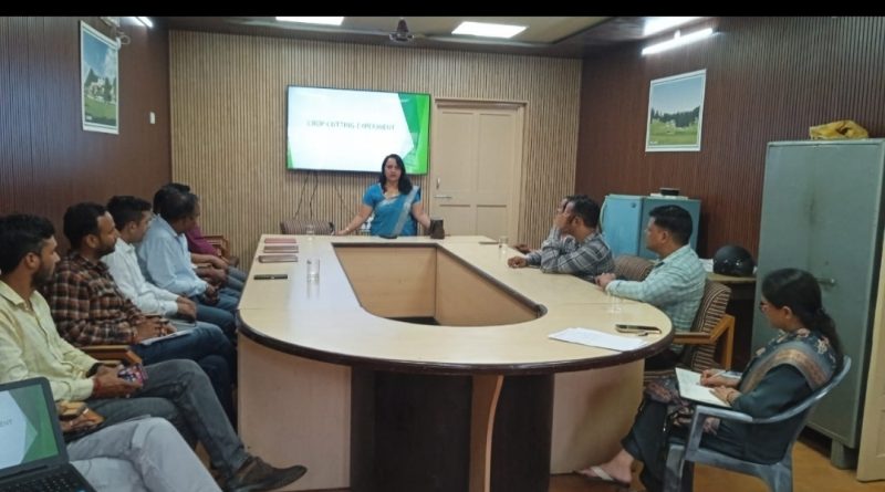 डॉ कुलदीप धीमान ने बताया कि हर फसल की कटाई से पहले सभी अधिकारियों को “क्रॉप कटिंग” करने के तरीके तथा इसके बाद फसल की पैदावार के आंकलन की जानकारी दी जाती है I उन्होंने बताया कि किसी भी फसल की पैदावार का आंकलन करने के लिए किसानों के खेतों के खसरा नम्बरों का चयन एक तकनीक से पहले ही कर लिया जाता है I उन्होंने इस बार फसल पैदावार के आंकलन के लिए सभी क्रॉप कटिंग के कार्य व इसके परिणाम मोबाइल एप में दर्ज किये जायेंगे ।