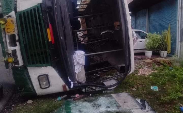 चंबा से अमृतसर जा रही एचआरटीसी बस सड़क पर पलटी, एक यात्री की माैत, 16 घायल