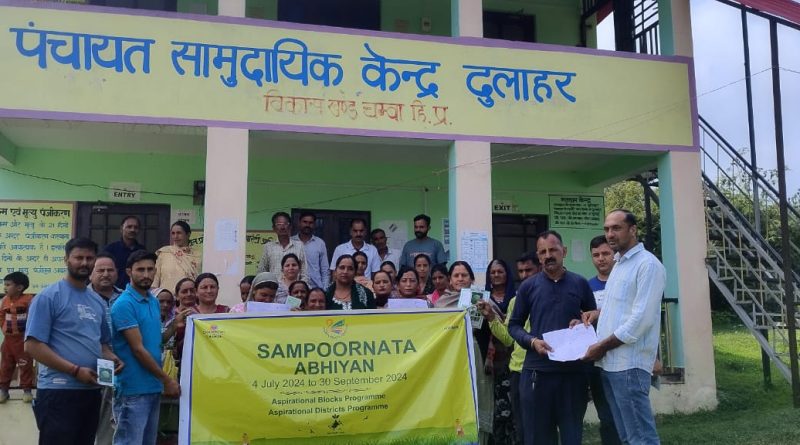 नीती आयोग द्वारा चलाये जा रहे सम्पूर्णता अभियान के अंतर्गत कृषि विभाग जिला चंबा द्वारा ग्राम पंचायत दुलाहर में एक किसान जागरूकता शिविर का आयोजन किया गया। इस किसान जागरूकता शिविर में किसानों को मिटटी परिक्षण के लाभों के बारे में जानकारी गई I इस अवसर पर 50 किसानों को मिटटी स्वास्थ्य कार्ड वितरित किये गये I